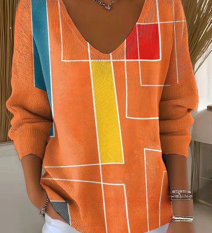 Katalin | Pulóver feltűnő kontrasztos csíkokkal