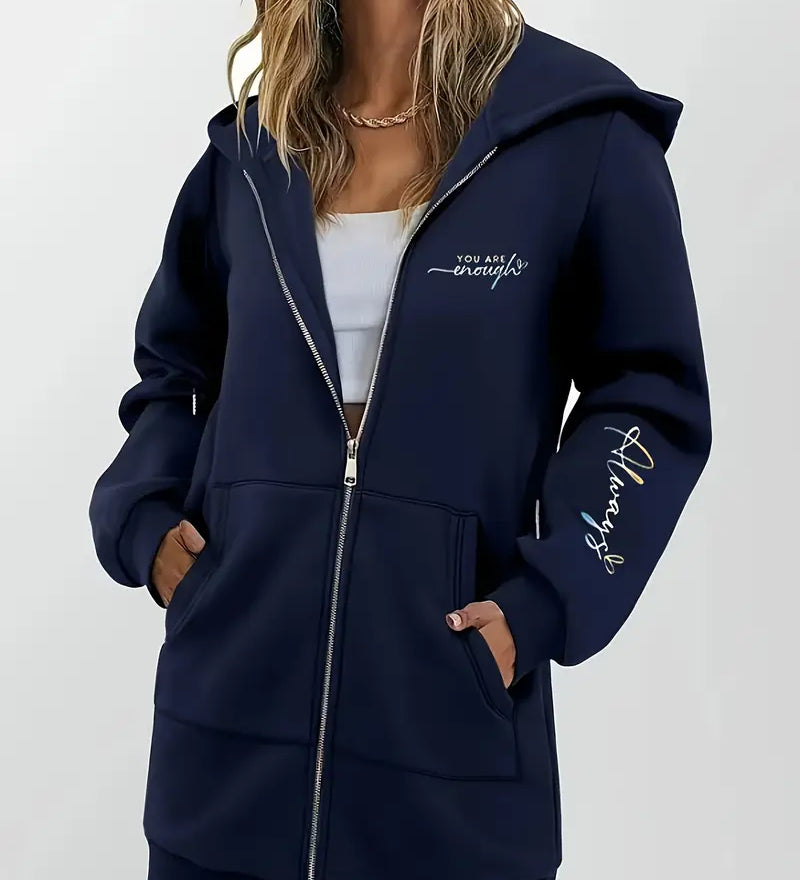 Angeleen - Geometrikus Mintás Kapucnis Kabát Cipzárral