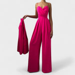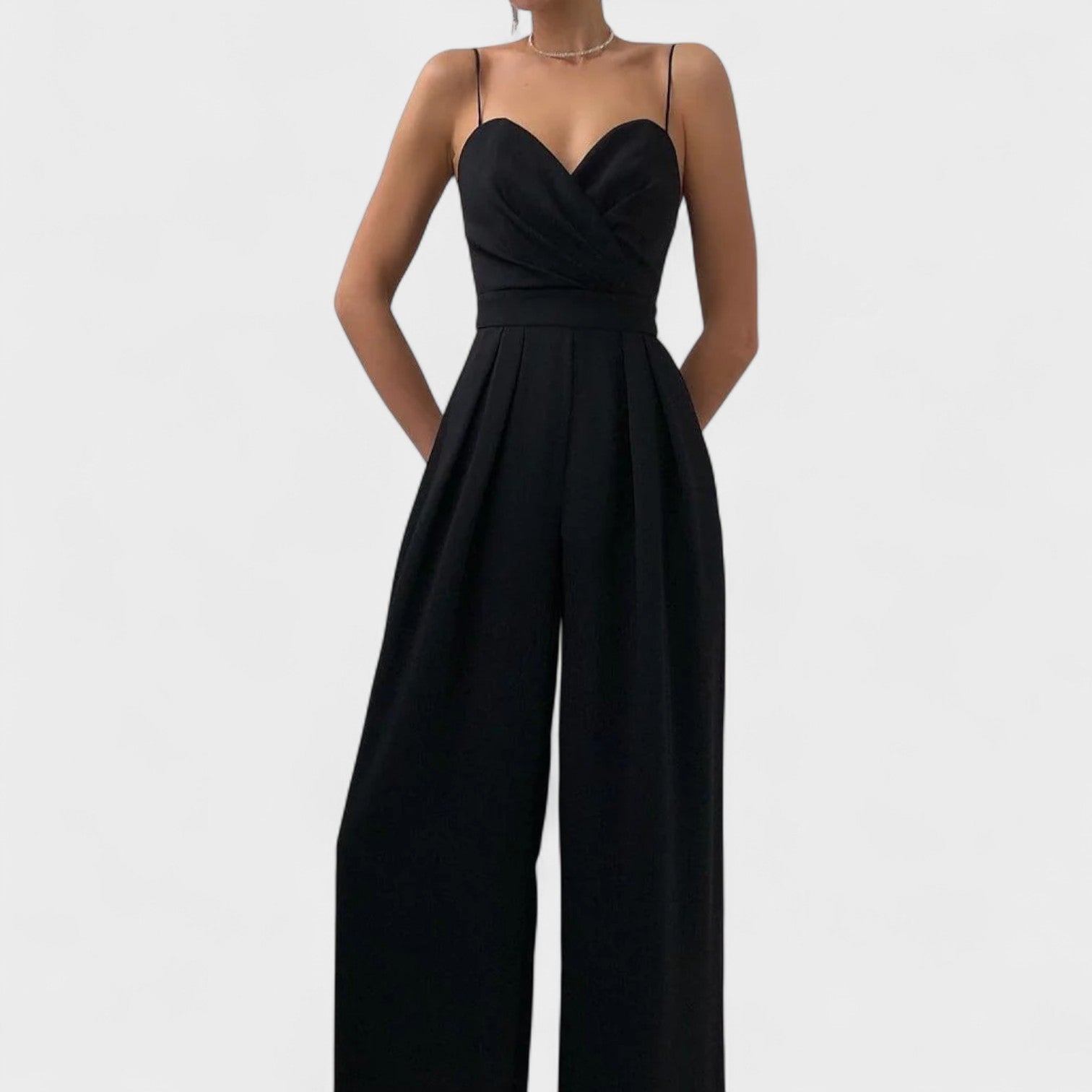 Ez a hosszú, vékony pántos, keresztpántos dekoltázsú overál ideális választás mindazoknak, akik kifinomultságra vágynak modern csavarral. A hangsúlyos derékrész kiemeli az alakot, és tekintélyt kölcsönöz bármilyen alkalomra – legyen szó hivatalos vacsoráról vagy különleges ünnepségről. Minimalista kialakítása sokoldalúvá teszi: könnyen kombinálható feltűnő vagy visszafogott kiegészítőkkel, a saját stílusától függően.