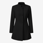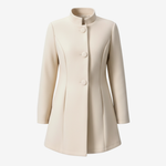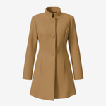 Ez a stílusos kabát egyszerű szabásával a klasszikus női elegancia szinonimája. A finoman testhezálló fazon enyhén hangsúlyozza a derekat, miközben maximális kényelmet biztosít. A magas gallér védi a hidegtől, a nagy gombok pedig karaktert és eleganciát adnak hozzá. Tökéletes választás munkához és városi sétákhoz – azoknak a nőknek, akik értékelik a legjobb értelemben vett egyszerűséget.