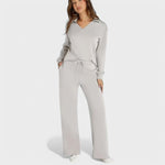 Képzeld el, ahogy egy puha V-nyakú pulóvert viselsz, amelyhez rugalmas derekú nadrág társul – ezek nemcsak kiemelik alakodat, hanem egész napos kényelmet is biztosítanak.